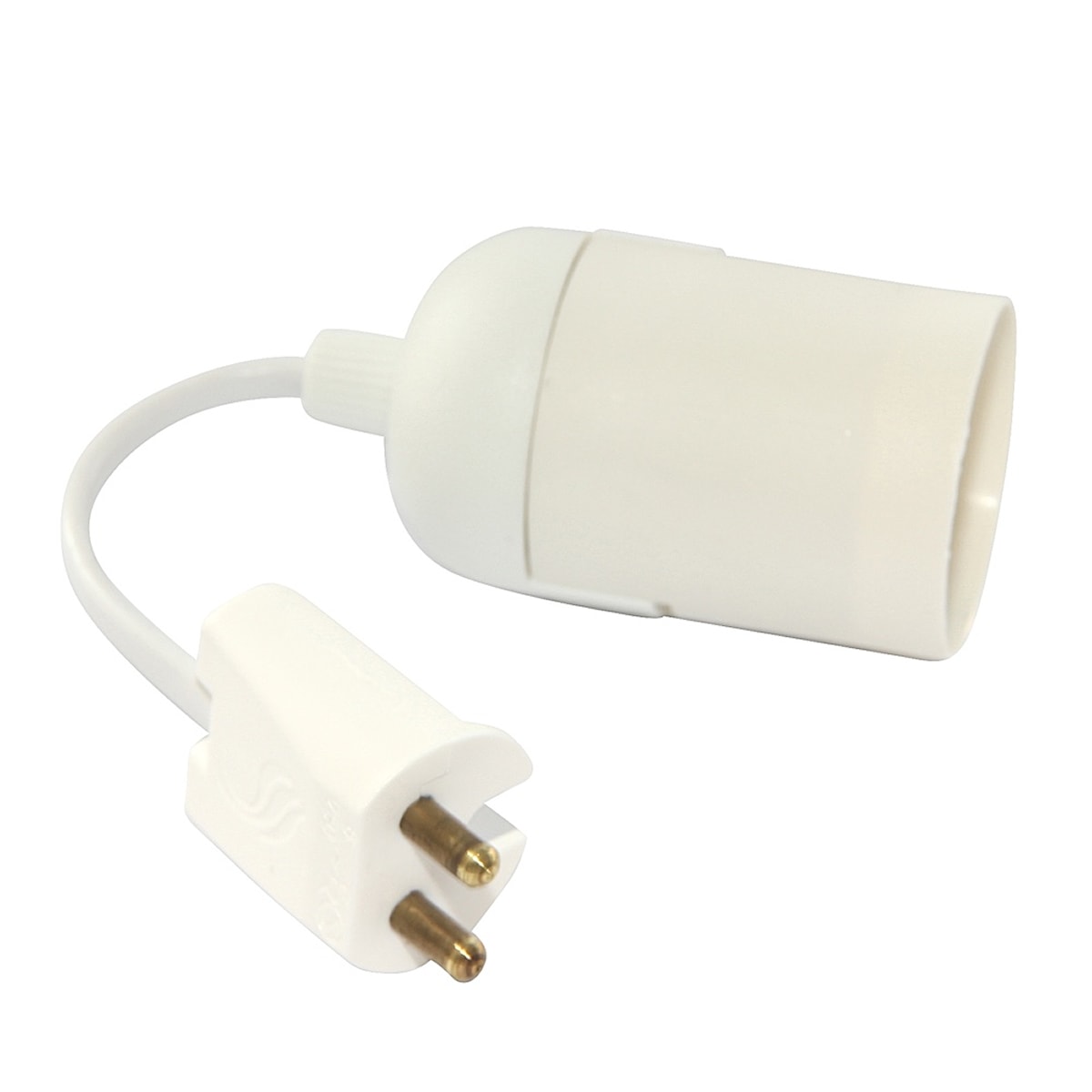 Lampupphäng Komplett monterat med lamppropp samt lamphållare för tillfällig belysning. Sockeln är den stora skruvsockeln E27. Lampproppen passar i både jordade och ojordade takuttag.