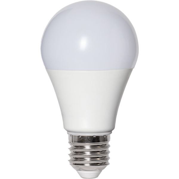 LED-normallampa sensor från Star Trading med E27-sockel och formen A60 för 230V. Lampan har opalfärgat glas och är utrustad med ett ljusrelä som automatiskt tänder lampan när det blir mörkt och släcker den igen när ljusnivån överstiger 30 lux. Ljusflödet är 806 lumen med en effekt på 8,2W, vilket kan användas som en 60W glödlampa. Färgtemperaturen är den varmvita glödljusfärgen 2700K som ger ett behagligt och hemtrevligt ljus. Livslängden är 25000 timmar. Energiklass F.