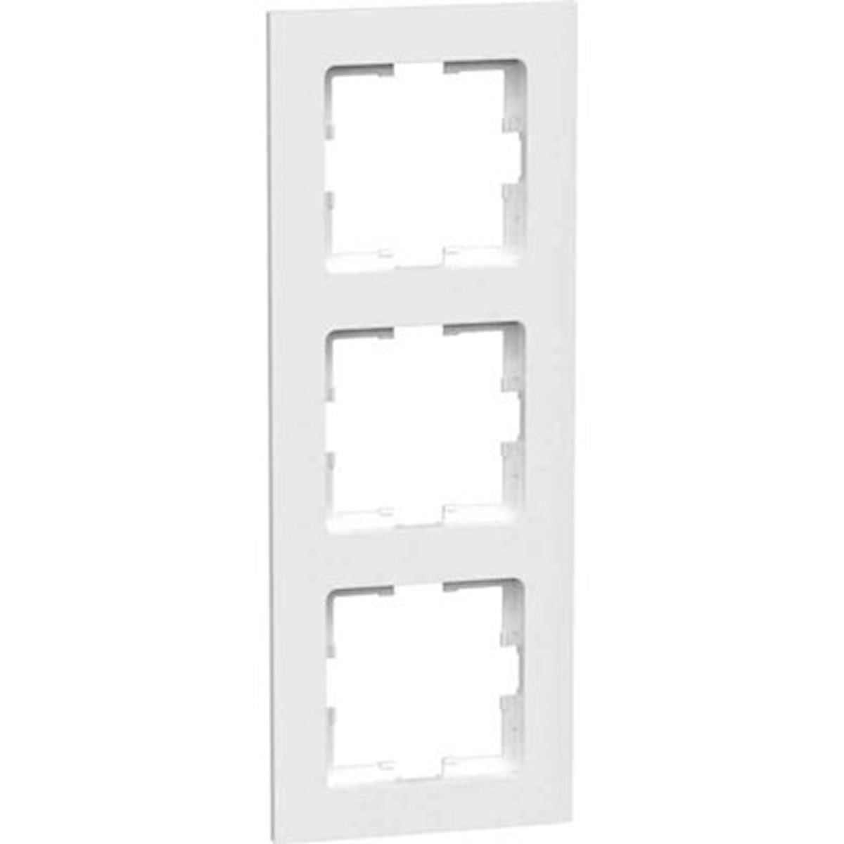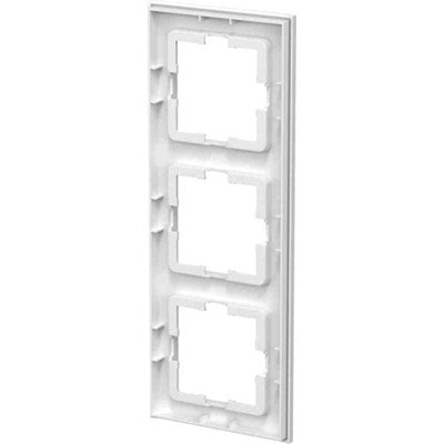 Täckram för infällda apparater från Gelias serie Connect to Home, täckramen har tre fack för tre vägguttag.